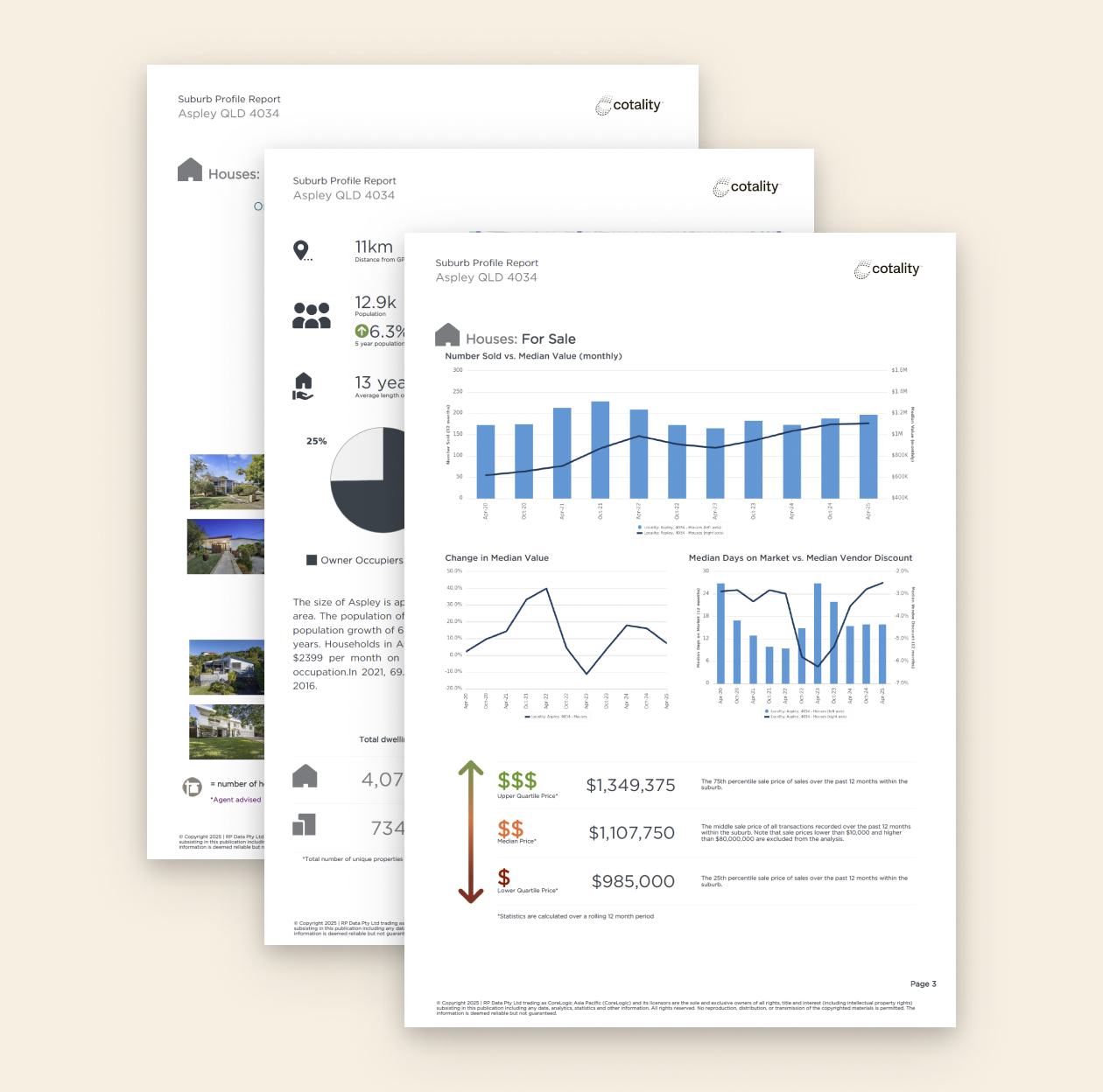 The report provides essential context about the broader area. This includes data on population trends, suburb characteristics, and ownership profiles.
