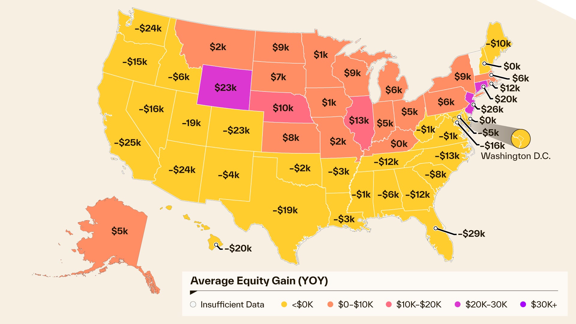 ·New Jersey, Wyoming, and Connecticut saw the largest year-over-year equity gains. Florida, California, and Arizona saw the largest decreases in equity.