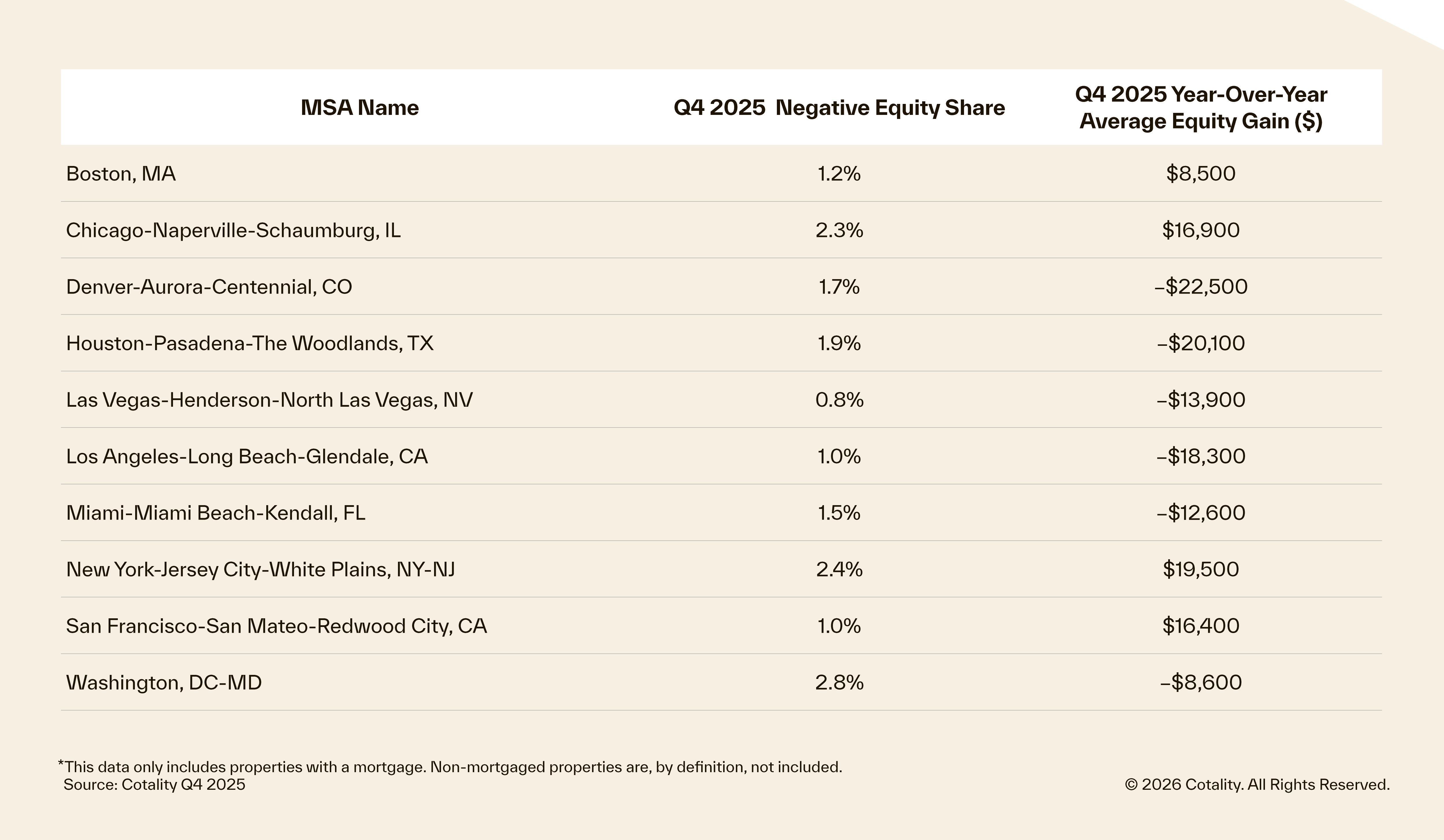 The combined national value of negative equity was approximately $366 billion at the end of Q4 2025, up $3.3 billion, or 1%, from the previous quarter. It was up approximately $24.2 billion year over year, or 7%, from $342 billion inQ4 2024.